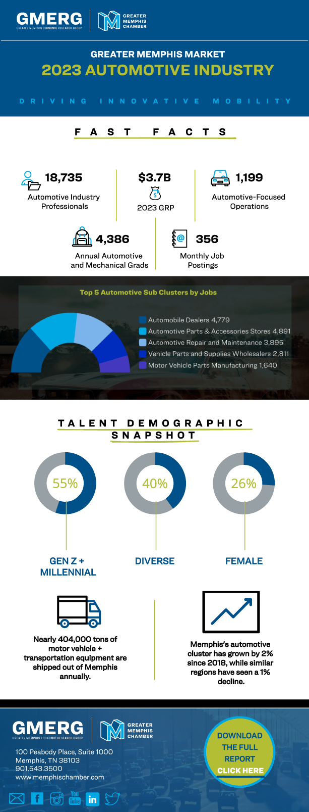 Automotive & Suppliers Report 2024 Download Full Automotive Industry Report REPORT PREVIEW / SNAPSHOT Download Full Automotive Industry Report Download Snapshot Automotive Industry Report Visit the Memphis Moves Website